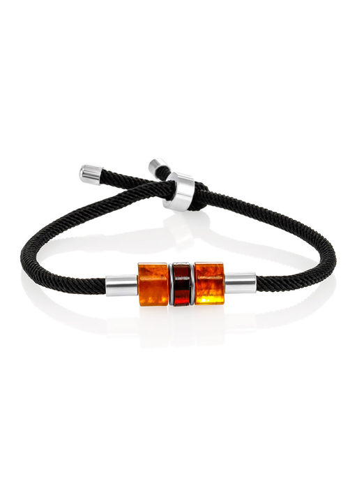 Браслет в виде шнурка с декоративной вставкой из янтаря