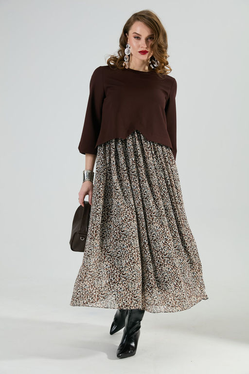Платье NIKVA н740-20 шоколад и шоколадная абстракция