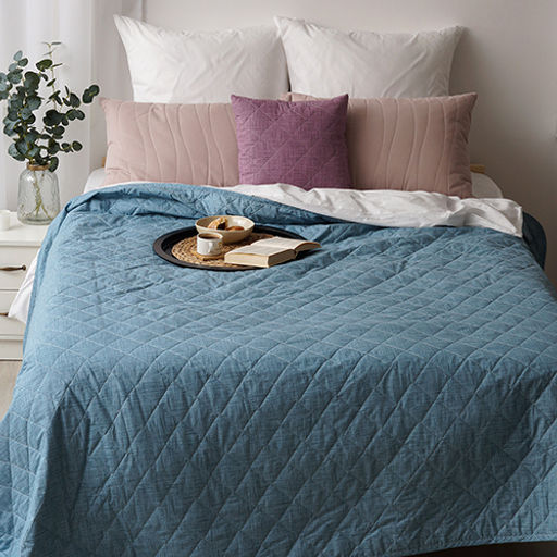 Покрывало стеганое 215х240 Традиция, поплин, 100% хлопок, Серо-голубой текстура 215х240