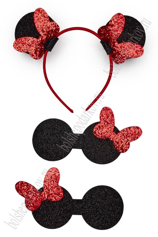 Лазерная вырубка из кожзама 7 см "Ушки и бантик маленький" (3 пары)