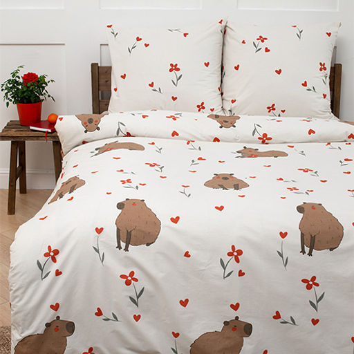 КПБ Традиция, 1,5 спальный, поплин, 100% хлопок, пл. 110 гр./кв.м., Капибара Пододеяльник 146*217, простыня 150*217, наволочка 70*70 (2 шт.) 1,5 спальный