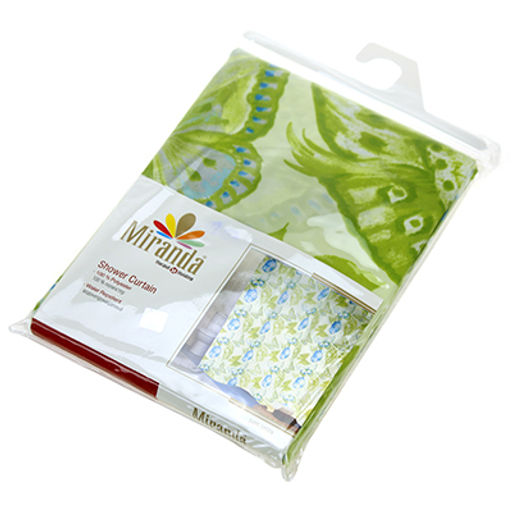 "Miranda" Штора для ванной тканевая 180х200см "Сари-бабочки зеленое", без колец, 100% п/э (Турция)