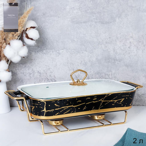 Мармит с подогревом 2 л Черное золото / BG-607-2 /уп 8/ керамическая чаша на подставке с подогревом