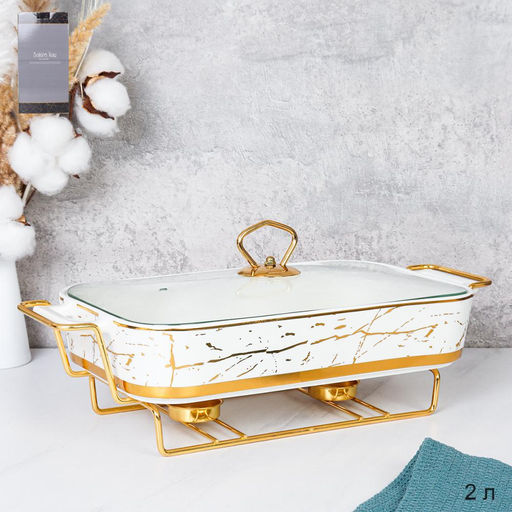 Мармит с подогревом 2 л Белое золото / WG-605-2 /уп 8/ керамическая чаша на подставке с подогревом