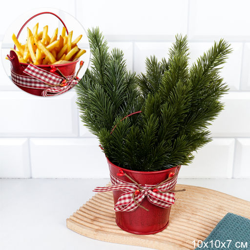 Кашпо ведерко 10х10см / YW08 /уп 144/ Новогоднее/ Красное