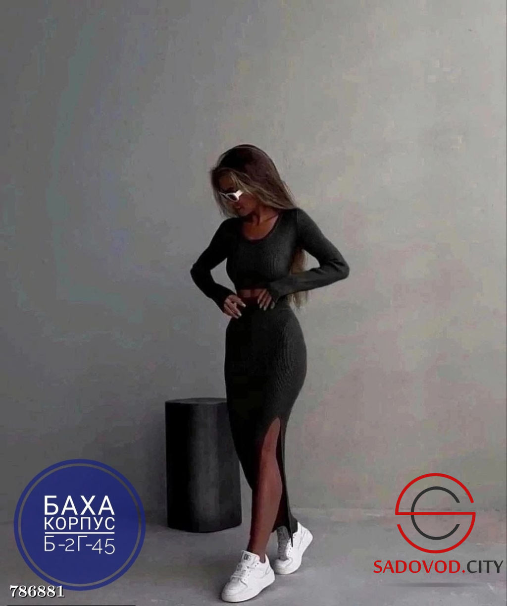 Женский силуэтный костюм с юбкой