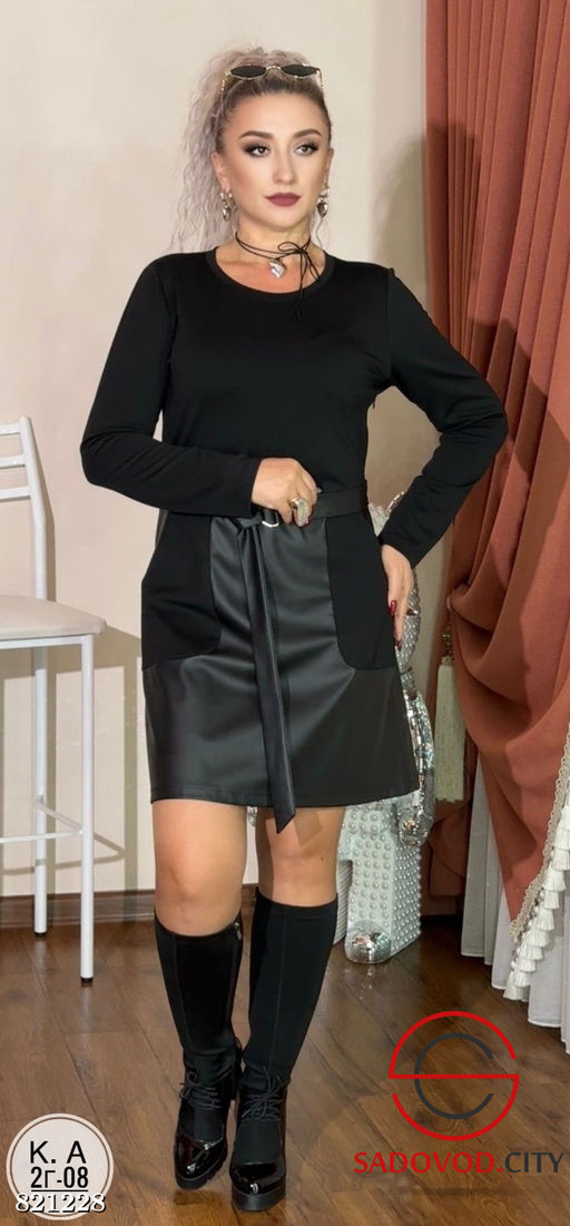Платье женское с кожаной вставкой