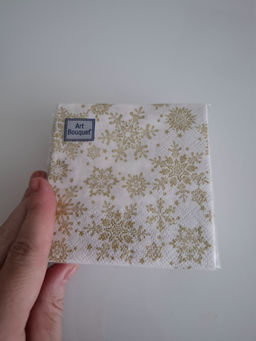 Салфетки бумажные "Art Bouquet" 20х20см, 2-х слойные, 30 штук в упаковке, 100% целлюлоза, "Золотые снежинки" (Россия)