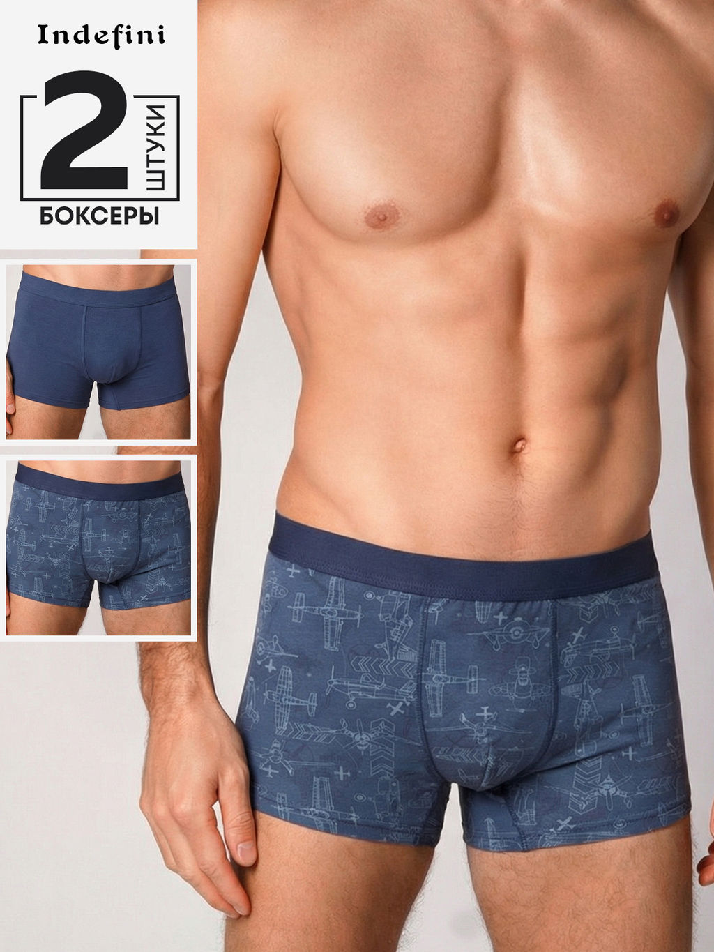 Трусы мужские Indefini 5050MUFZ хлопок с эластаном синий