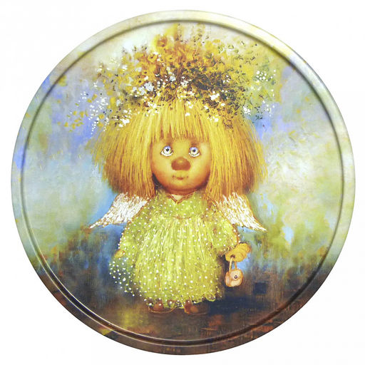Поднос металлический "Ангел хорошего настроения" д20см, круглый (Россия)