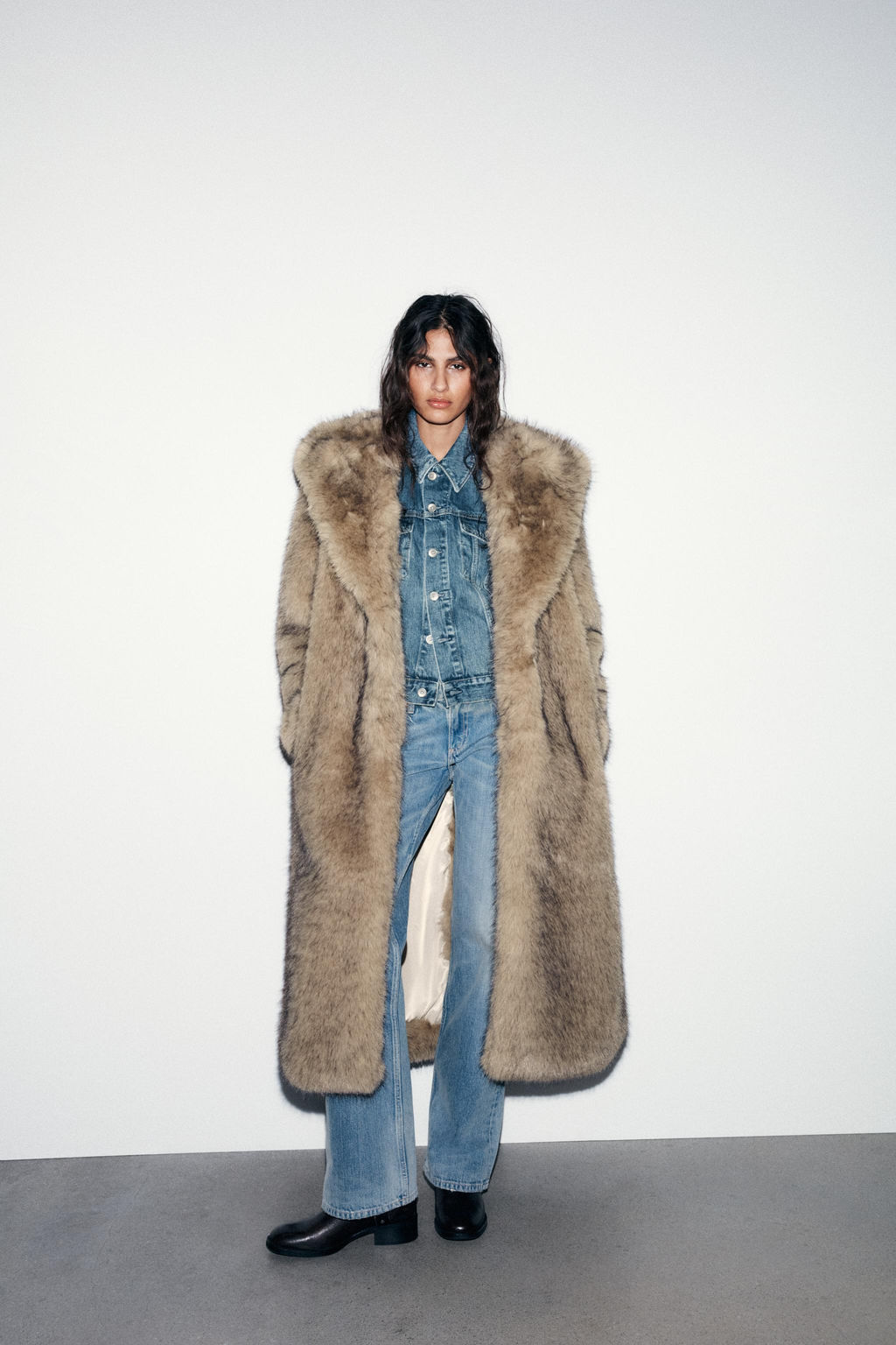 FAUX FUR COAT WITH HOODIE