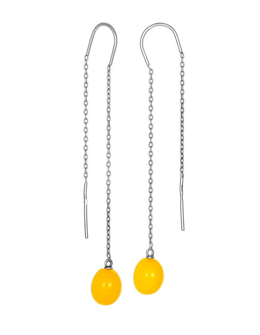 Изысканные серьги-цепочки с медовым янтарём Росинки