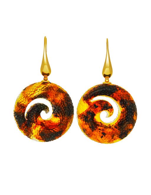 Эффектные оригинальные серьги из натурального текстурного янтаря Марс