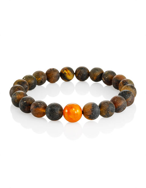 Браслет из формованных янтарных шаров, украшенный контрастной вставкой Куба