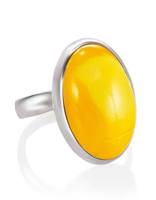 Эффектное кольцо Глянец из натурального янтаря медового цвета