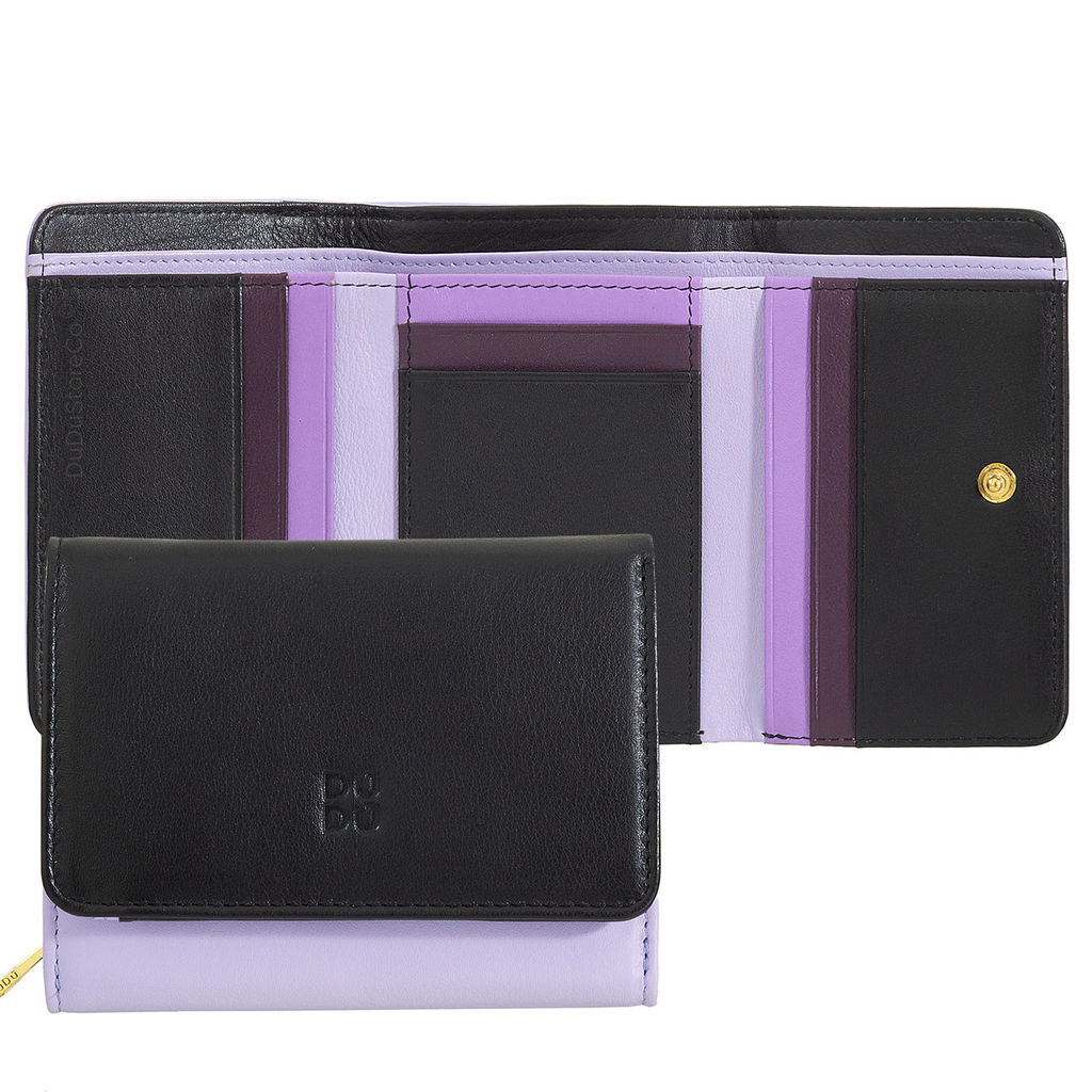Итальянский кожаный кошелек DuDu серии Pemba | черно-лавандовый