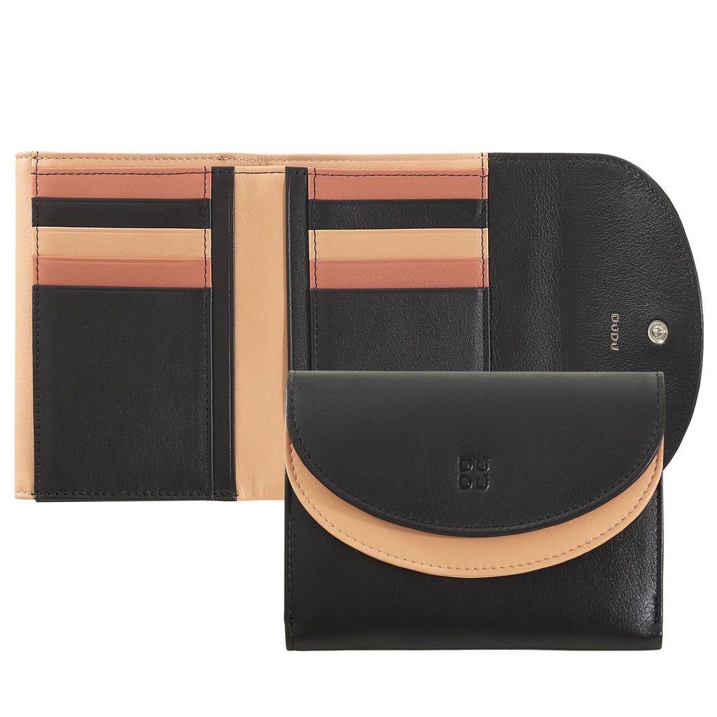 Итальянский женский кожаный кошелек DuDu серии Galapagos | черно-розовый