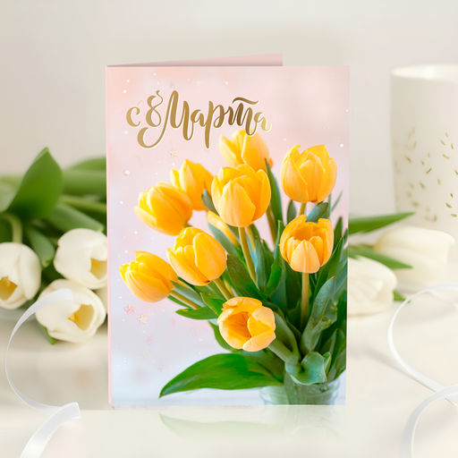 Открытка 4 шоколадки "с 8 марта (жёлтые тюльпаны)"
