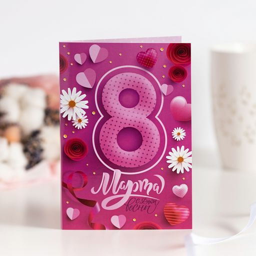 Открытка 4 шоколадки "8 марта, с днем весны (ярко-розовая)"