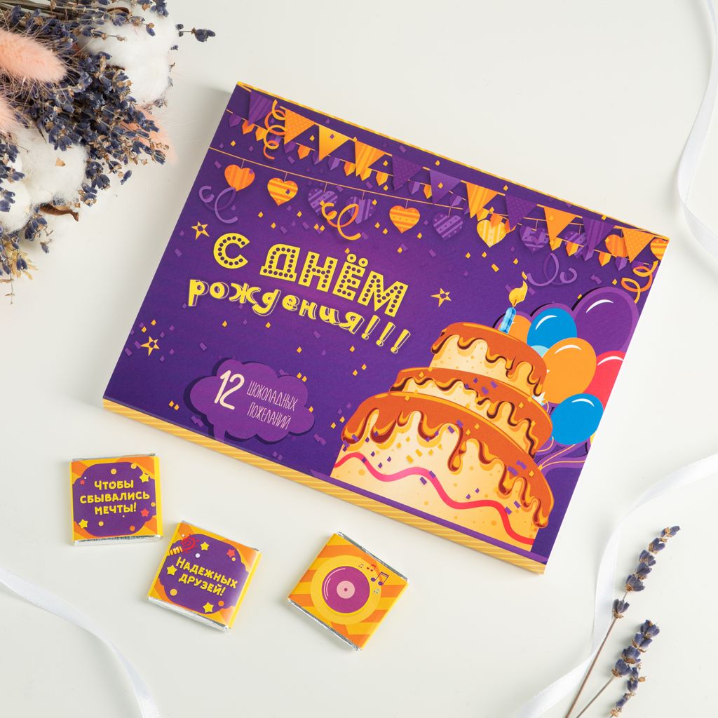Набор 12 шоколадок "С днём рождения (фиолетовый)"