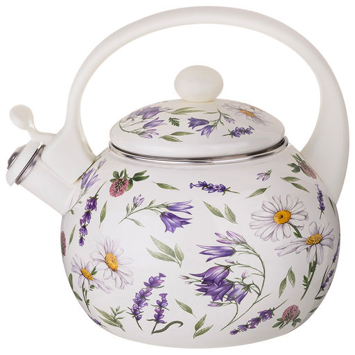 ЧАЙНИК AGNESS ЭМАЛИРОВАННЫЙ СО СВИСТКОМ СЕРИЯ FLOWER STORY, 2,2 Л