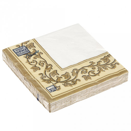Салфетки бумажные "Bouquet Home Collection Classic" 33х33см, 3-х слойные, 20 штук в упаковке, 100% целлюлоза, "Золотые узоры бежевый фон" (Россия)