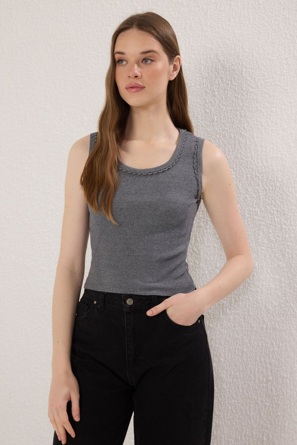 Antrasit Havuz Yaka S?f?r Kol Vucuda Oturan Fitilli Esnek Orme Bluz TWOSS25BZ00289