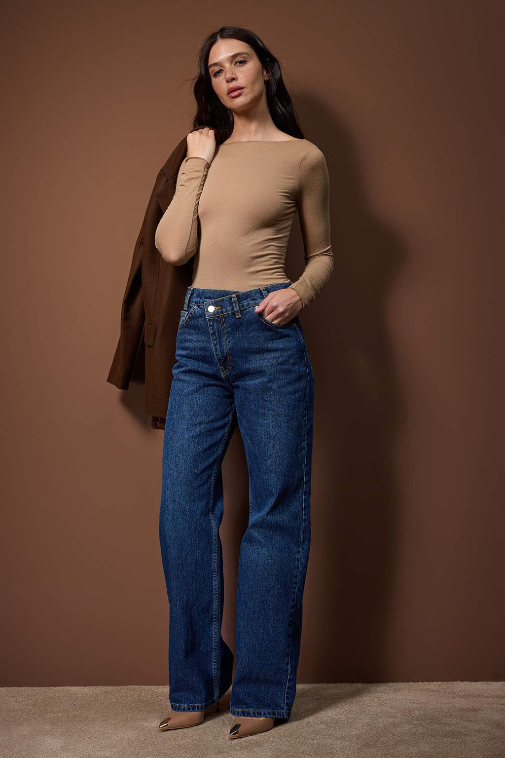 Mavi Yuksek Bel Asimetrik Kapama Bel Detayl? Wide Leg Jeans TWOAW26JE00290