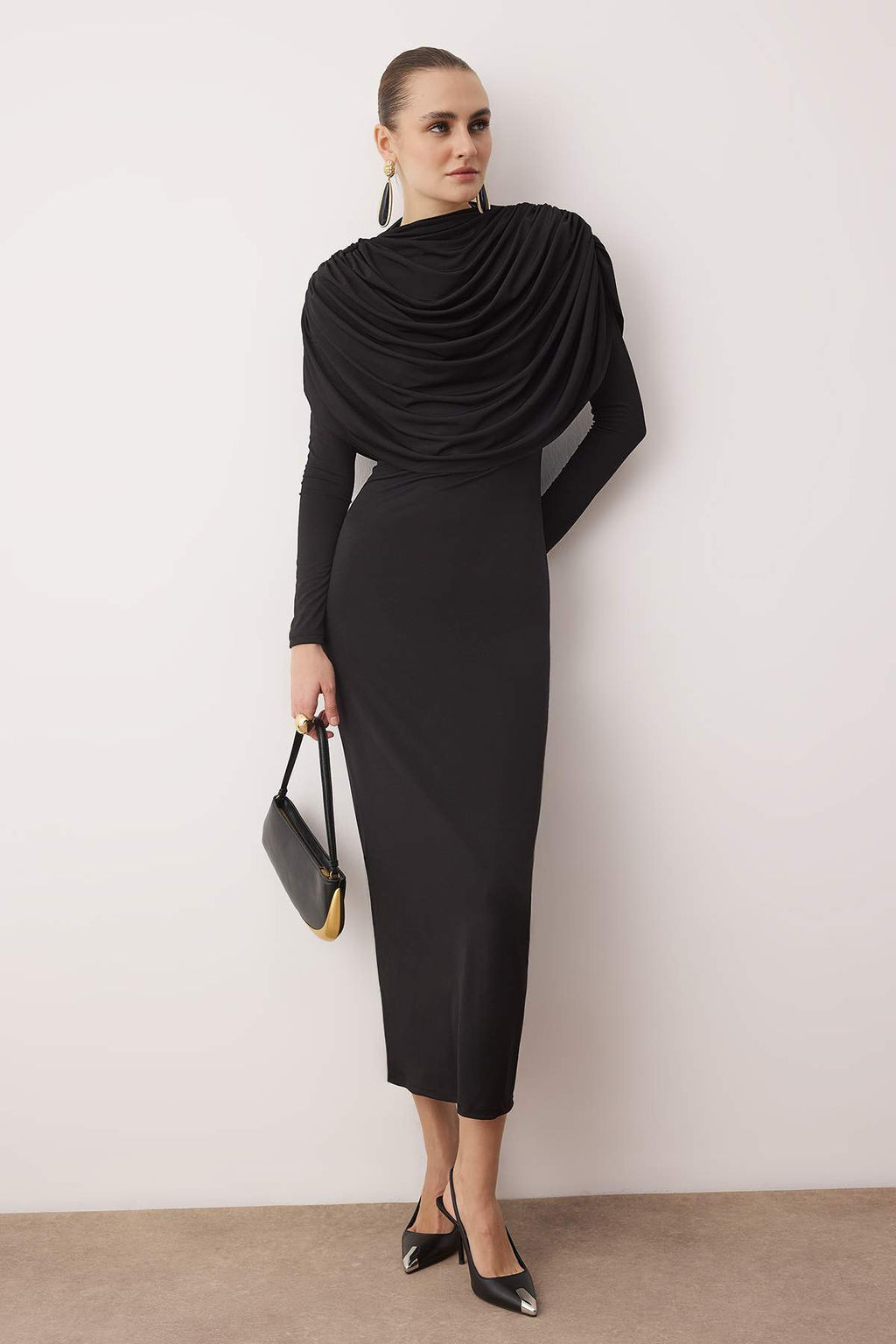 Siyah Yaka Detayl? Orme S?k/Gece Elbisesi