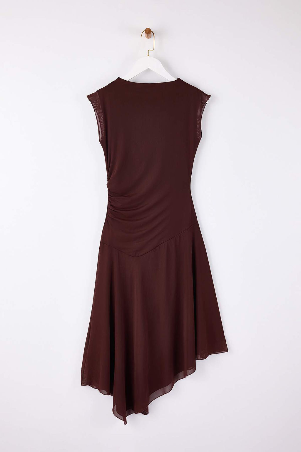 Kahverengi Belden Ac?lan Kay?k Yaka Kolsuz Buzgulu Midi Tul Orme Elbise TWOSS26EL00028