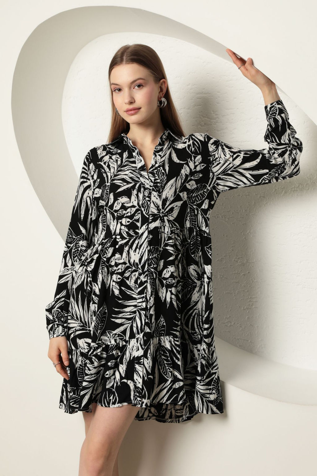 Siyah Cicekli Mini Dokuma Elbise TWOAW25EL00585