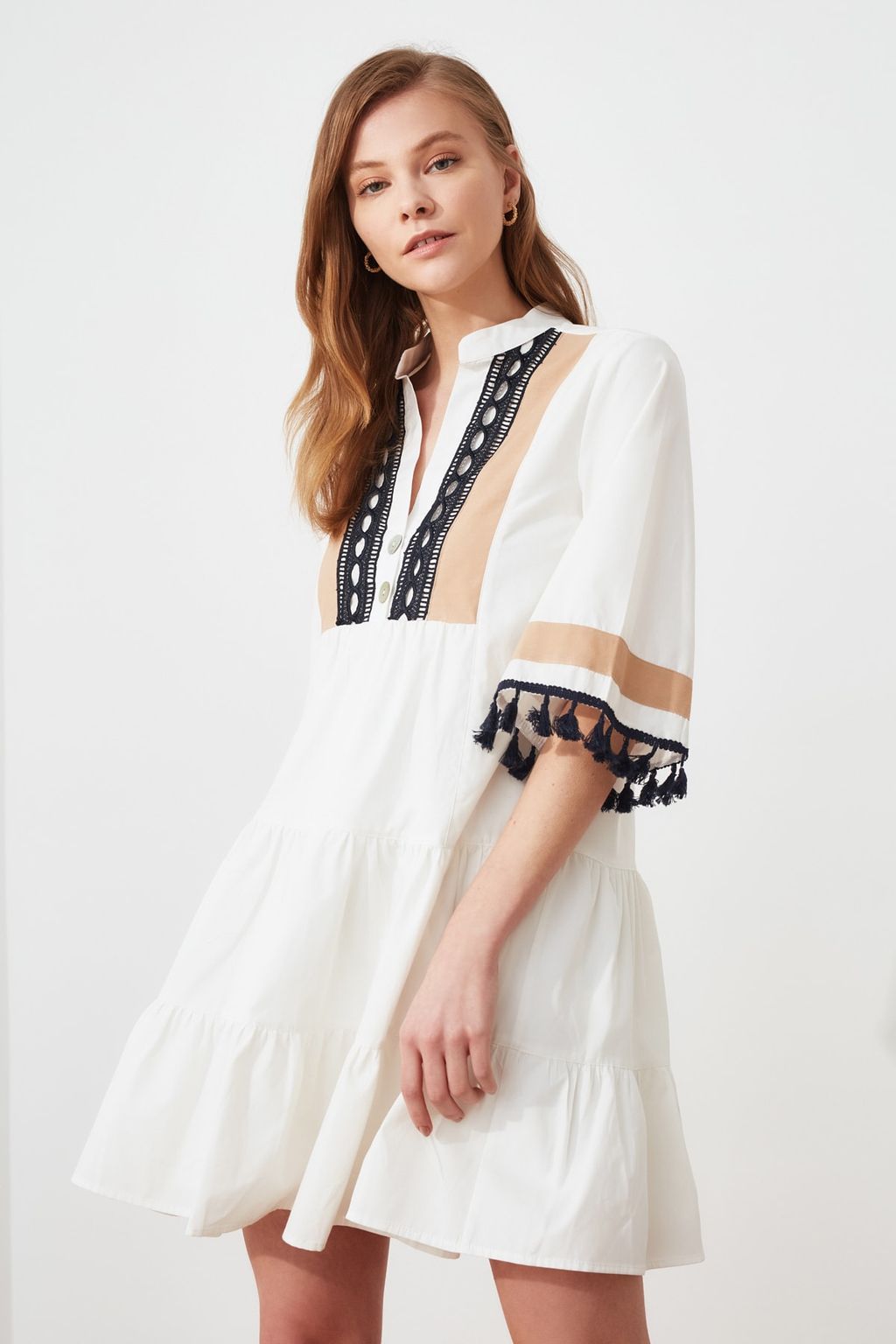 Beyaz Islemeli Shift/Duz Kesim Mini Dokuma Elbise TWOSS20EL1691