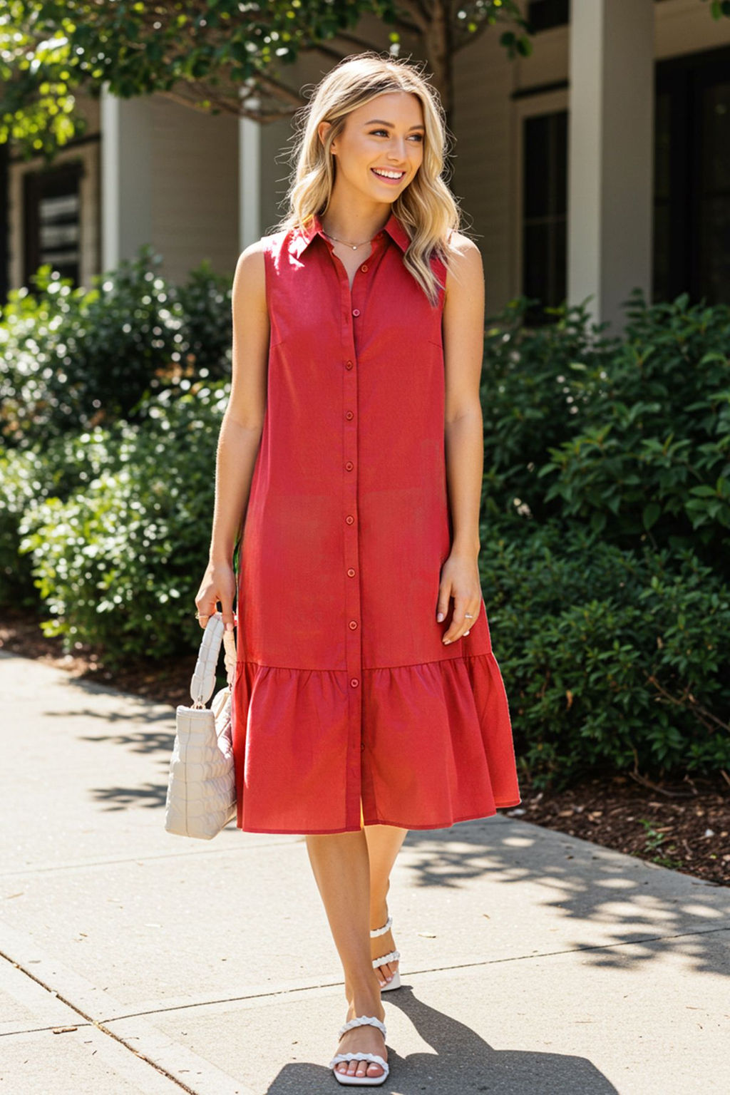 Nar Cicegi Duz Kesim Dugme Detayl? Midi Dokuma Gomlek Elbise TWOSS25EL00439