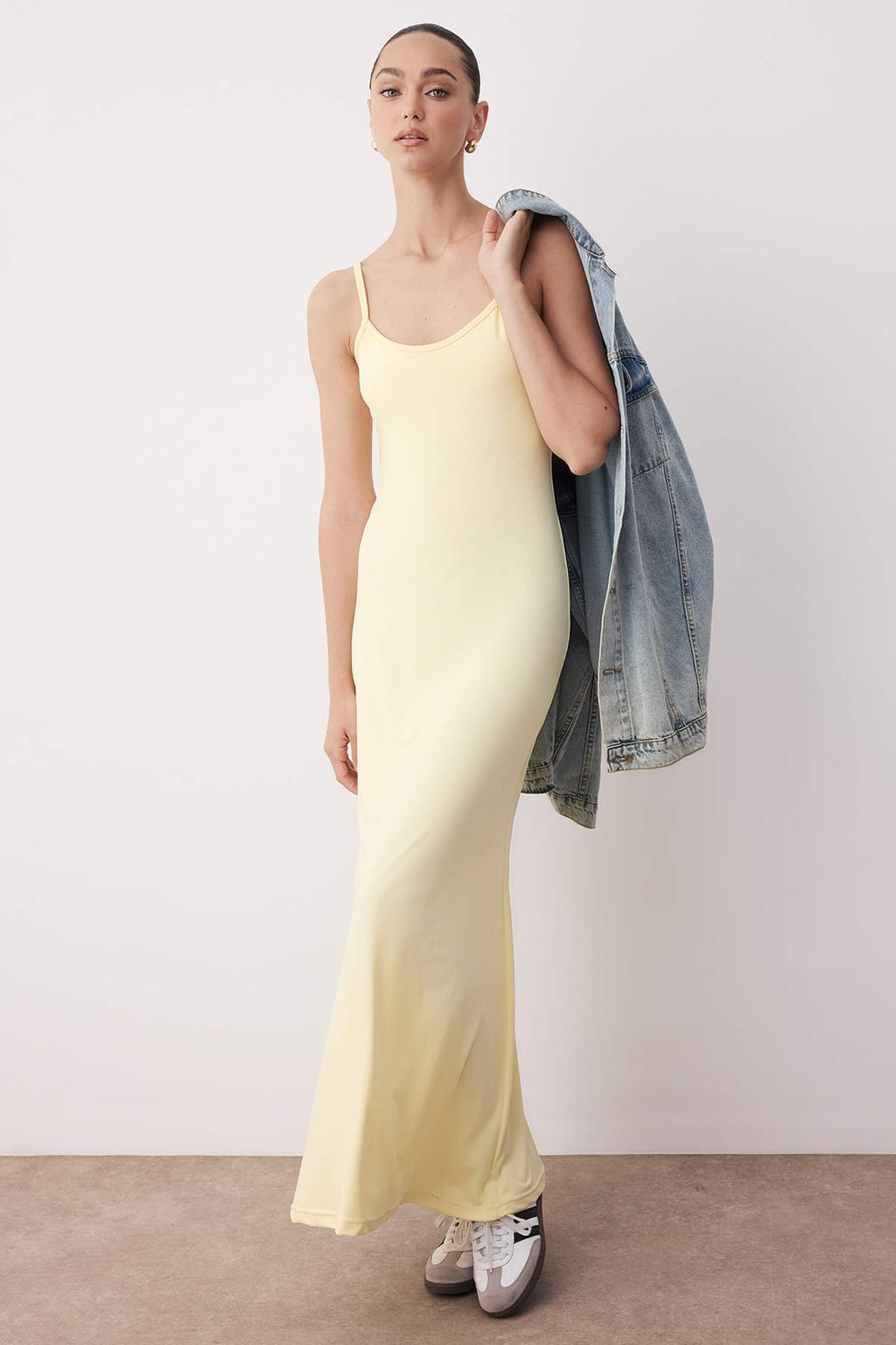 Sar? Ask?l? Havuz Yaka Bodycone/Vucuda Oturan Duz Maxi Orme Elbise TWOSS25EL00901