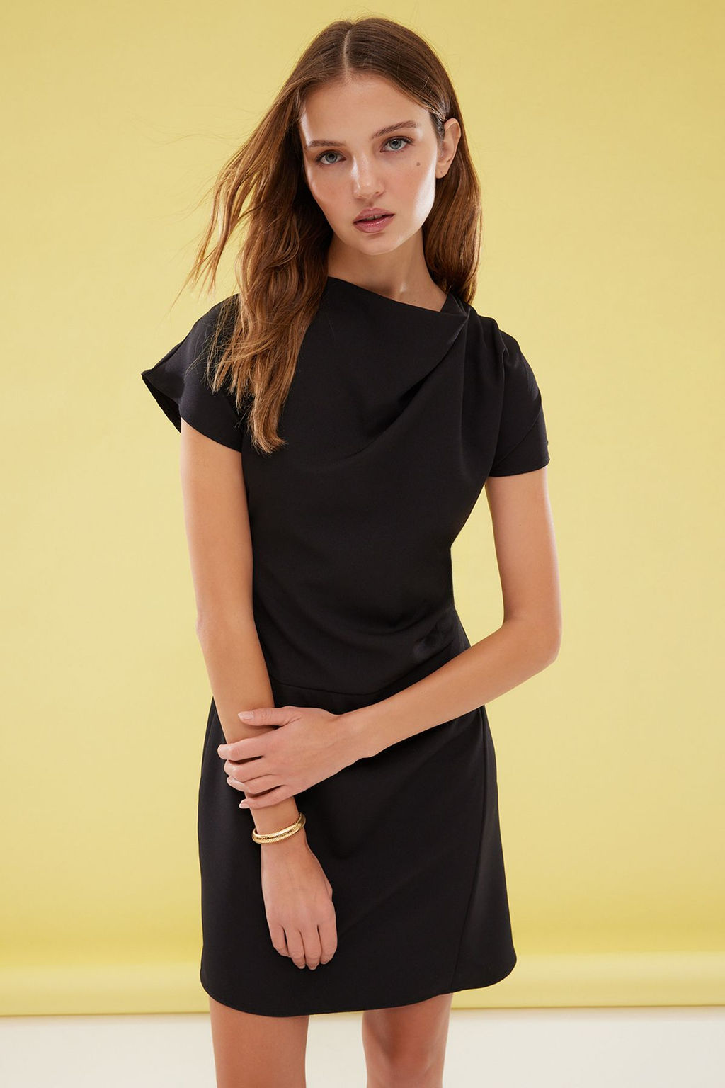 Siyah A Kesim Degaje Yaka Mini Dokuma Elbise TWOSS25EL00016