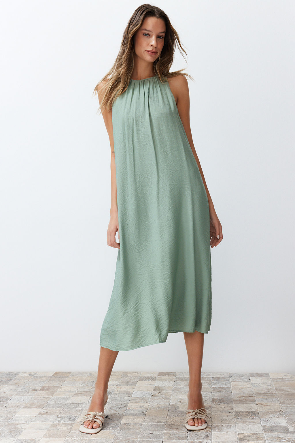 Haki Genis Kesim Yakas? Buzgu Detayl? Midi Aerobin Dokuma Elbise TWOSS24EL00609