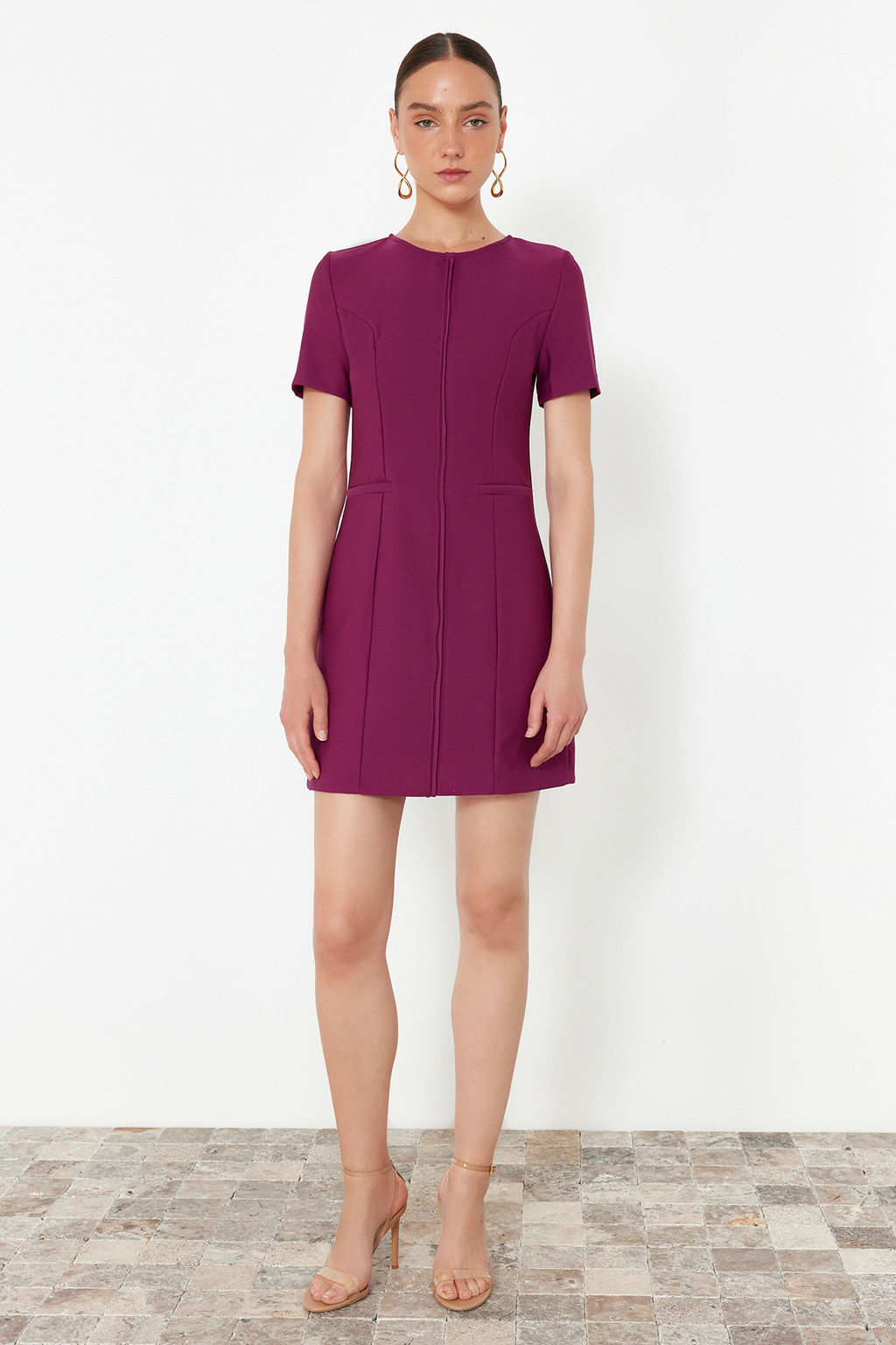 Mor A-line Bisiklet Yaka Mini Dokuma Elbise TWOSS24EL00460