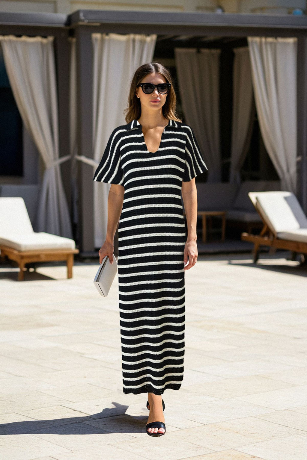 Siyah Mini Cizgili Polo Yaka Elbise TWOSS24EL00824