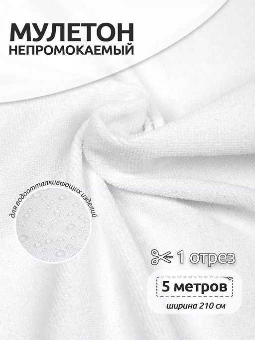 Ткань Мулетон отбеленный 165 г/м? 100% пэ шир.210 см арт.Mul.01 цв.белый уп.5м