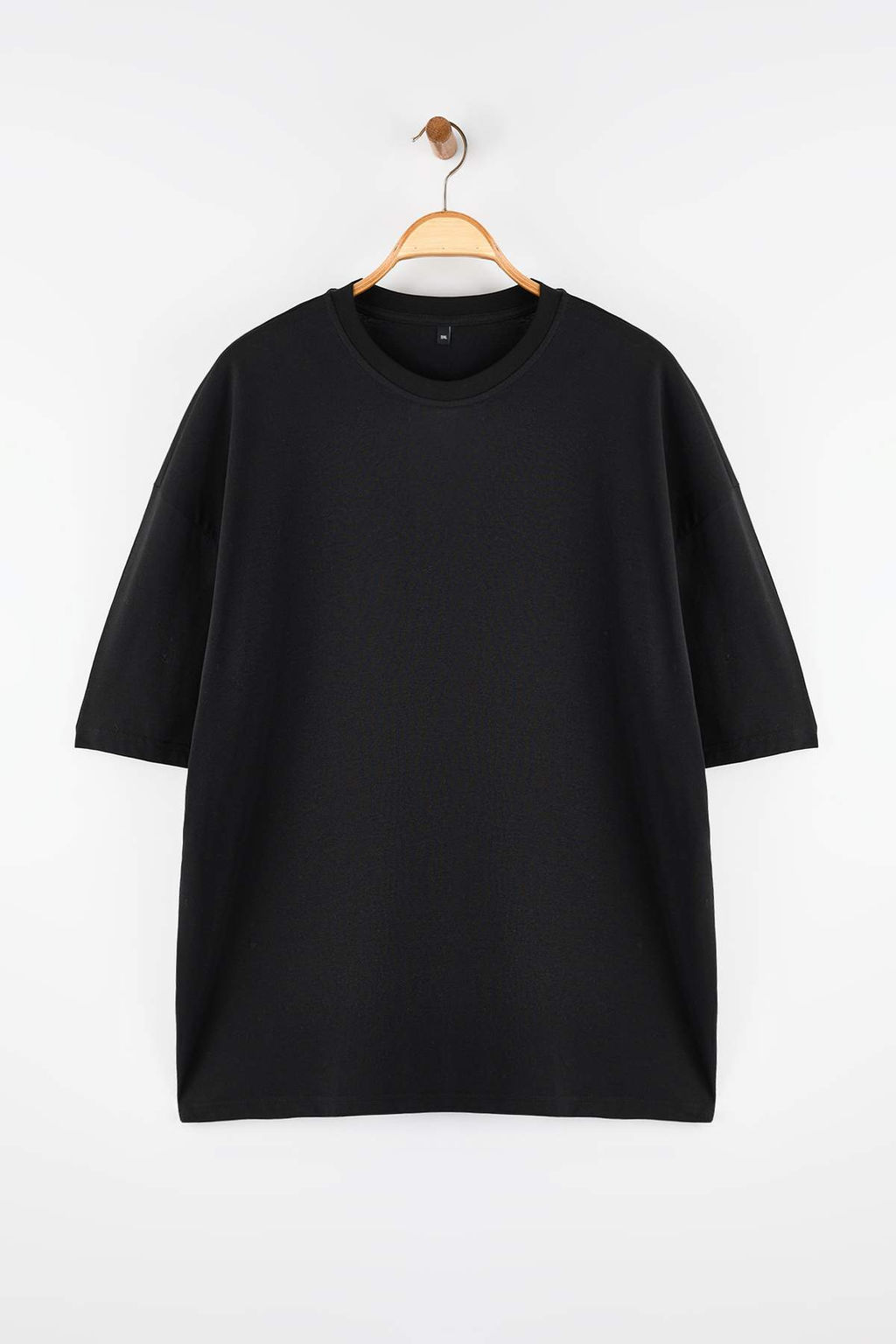 Siyah Oversize/Genis Kesim Buyuk Beden Basic T-shirt TMNSS26BF00001