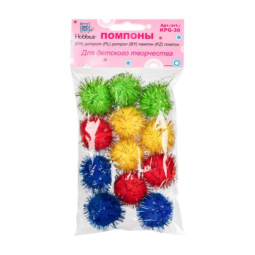 Hobbius KPG-30 Помпоны 30 мм 15 шт ассорти