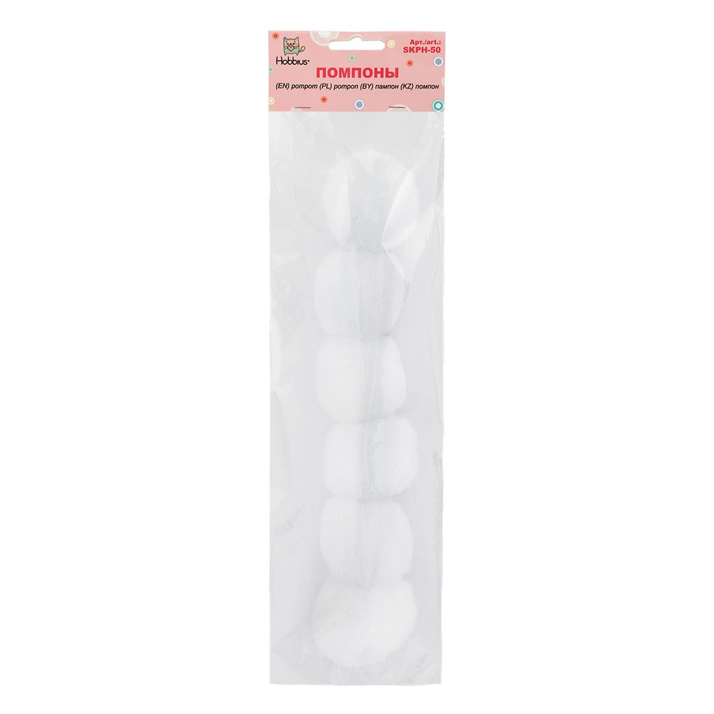Hobbius SKPH-50 Помпоны 50 мм 6 шт №01 белый