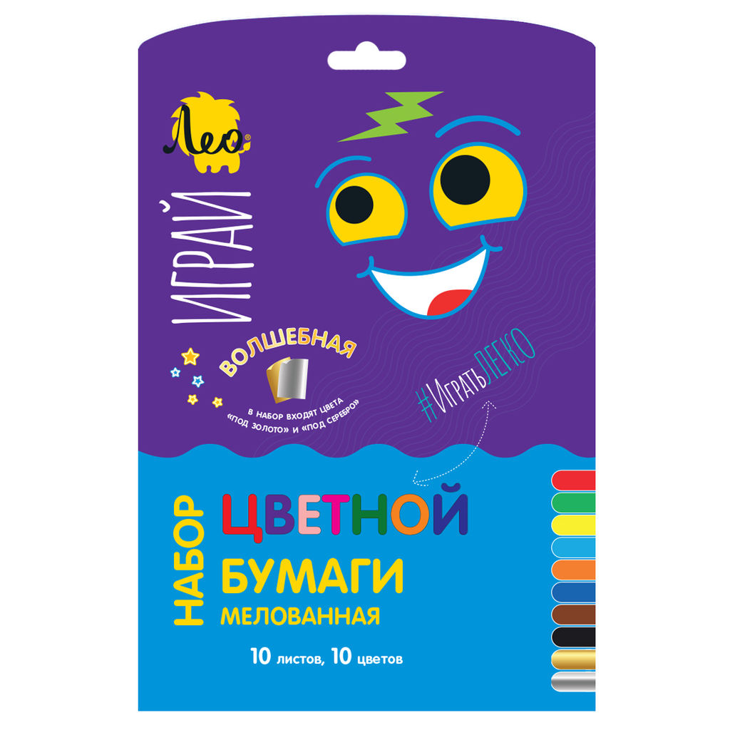 Лео Играй Цветная бумага (+золото и серебро), односторонняя, мелованная LPCP-08 115 г/м2 A4 21 х 28.5 см 10 л. 10 цв