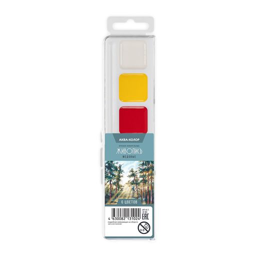Краска акварель Аква-колор Живопись медовые, без кисти в пластиковой упаковке с европодвесом JIV-W6 6 цв