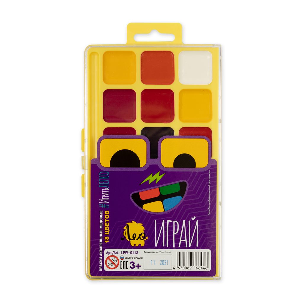 Краска акварель Лео Играй медовые, без кисти в пластиковой упаковке с европодвесом LPW-0118 18 цв