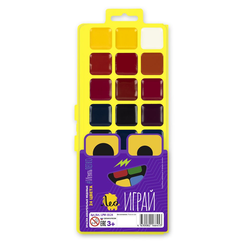 Краска акварель Лео Играй медовые, без кисти в пластиковой упаковке с европодвесом LPW-0124 24 цв