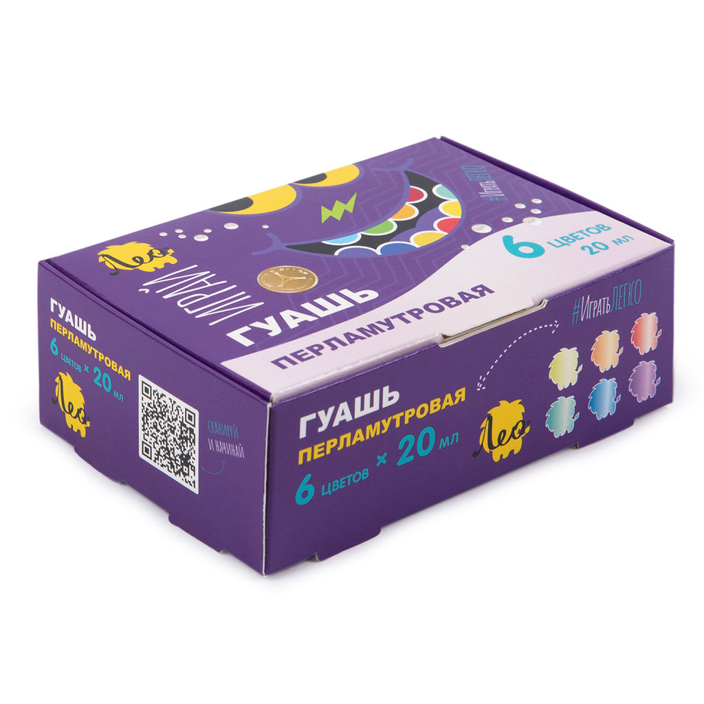 Краска гуашь Лео Играй набор перламутровые цвета в картонной упаковке LPGF-0106 6 цв. х 20 мл
