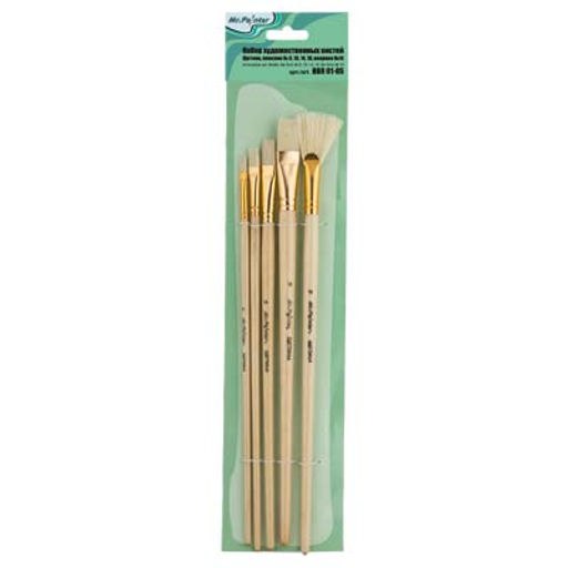 Набор кистей Mr.Painter щетина BBR 01-05 5 шт. длинная ручка плоские № 6, 10, 14, 18, веерная №14