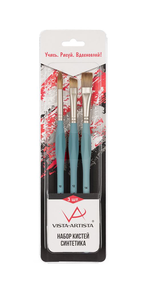 Набор кистей VISTA-ARTISTA синтетика VABS-01 3 шт. короткая ручка круглая №10, плоская скошенная №12, плоская №14