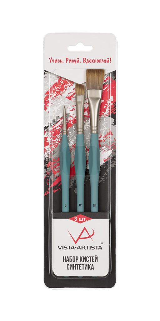 Набор кистей VISTA-ARTISTA синтетика VABS-02 3 шт. короткая ручка миниатюрная №0, плоская скошенная №12, плоская №18